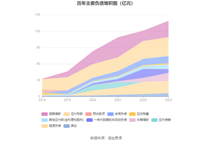 负债重大变化方面,截至2023年年末,公司短期借款较上年末增加57.07%,占公司总资产比重上升3.79个百分点;一年内到期的非流动负债较上年末减少57.71%,占公司总资产比重下降5.03个百分点;长期借款较上年末增加105.10%,占公司总资产比重上升2.99个百分点;其他应付款(含利息和股利)较上年末增加41.62%,占公司总资产比重上升0.77个百分点。