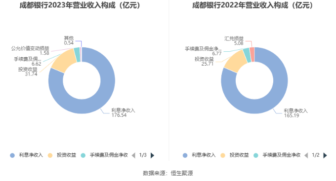 数据统计显示,成都银行近三年营业总收入复合增长率为14.13%,在城商行Ⅲ行业已披露2023年数据的7家公司中排名第2。近三年净利润复合年增长率为24.66%,排名2/7。
