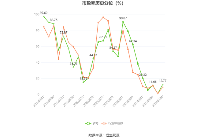 市盈率为负时,不显示当期分位数,会导致折线图中断。
