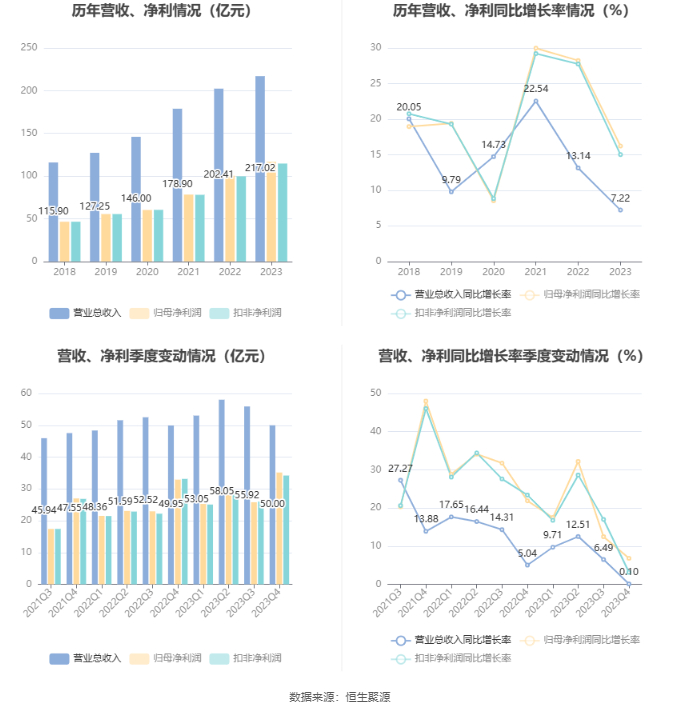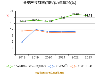 数据显示,2023年公司加权平均净资产收益率为18.78%,较上年同期下降0.7个百分点。