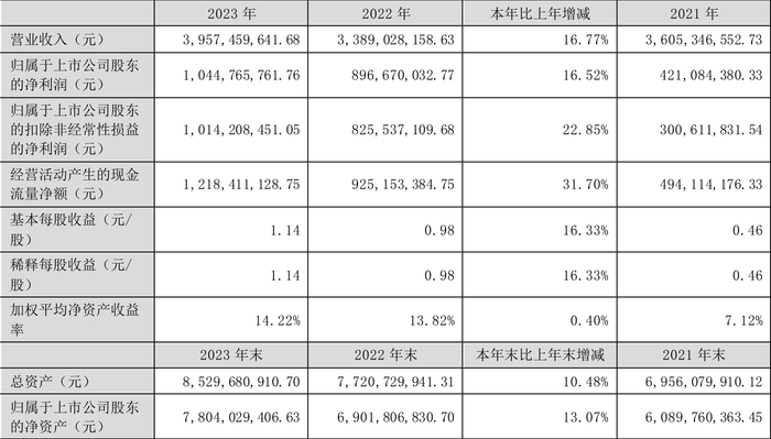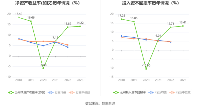 数据显示,2023年公司加权平均净资产收益率为14.22%,较上年同期增长0.40个百分点;公司2023年投入资本回报率为13.41%,较上年同期增长0.70个百分点。