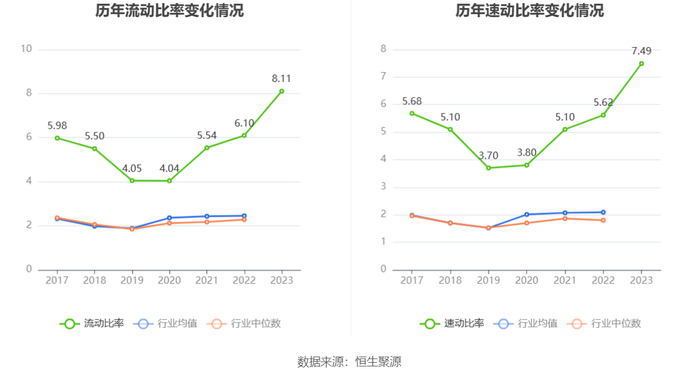 2023年,公司流动比率为8.11,速动比率为7.49。