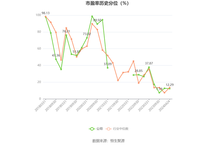 市盈率为负时,不显示当期分位数,会导致折线图中断。