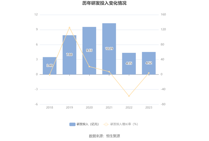 2023年全年,公司研发投入金额为4.52亿元,同比增长4.02%;研发投入占营业收入比例为11.43%,相比上年同期下降1.41个百分点。此外,公司全年研发投入资本化率为6.81%。