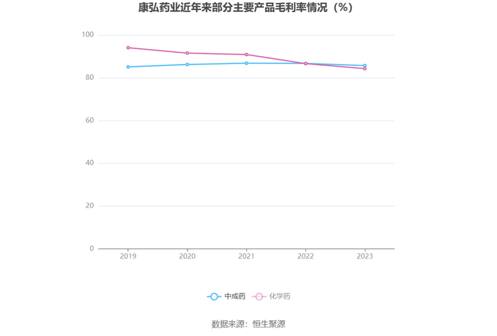 分产品看,生物药、中成药、化学药2023年毛利率分别为93.13%、85.75%、84.30%。