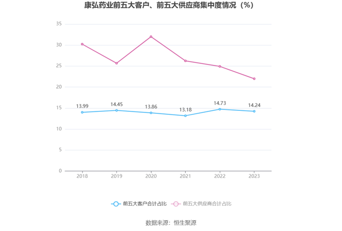 报告期内,公司前五大客户合计销售金额5.63亿元,占总销售金额比例为14.24%,公司前五名供应商合计采购金额0.85亿元,占年度采购总额比例为21.99%。