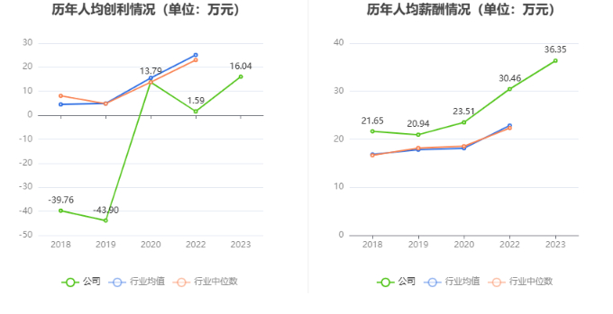 截至2023年末,公司员工总数为875人,人均创收101.82万元,人均创利16.04万元,人均薪酬36.35万元,较上年同期分别变化50.56%、908.92%、19.34%。