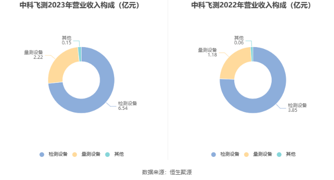 分产品来看,2023年公司主营业务中,检测设备收入6.54亿元,同比增长70.15%,占营业收入的73.46%;量测设备收入2.22亿元,同比增长88.56%,占营业收入的24.87%。