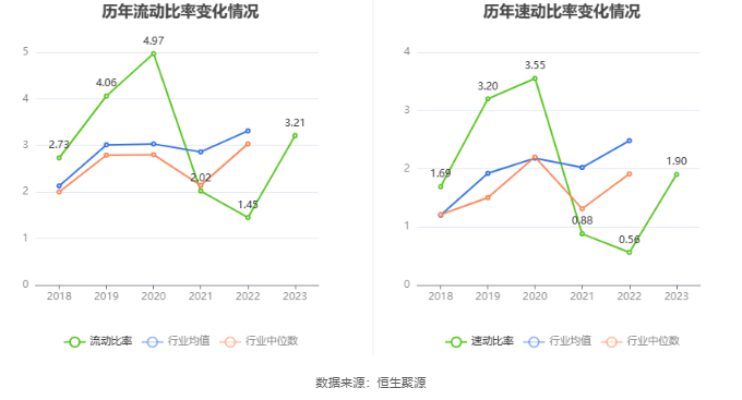 2023年,公司流动比率为3.21,速动比率为1.90。
