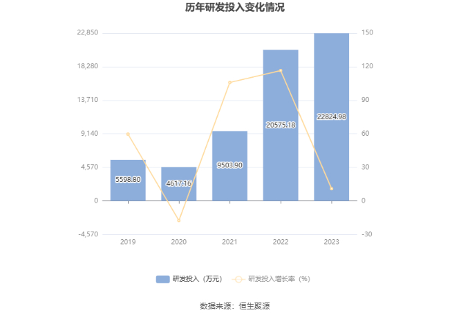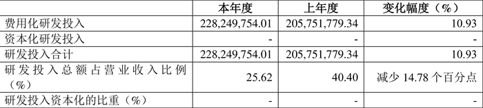 2023年全年,公司研发投入金额为2.28亿元,同比增长10.93%;研发投入占营业收入比例为25.62%,相比上年同期下降14.78个百分点。