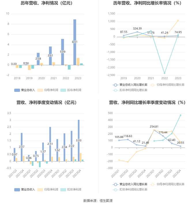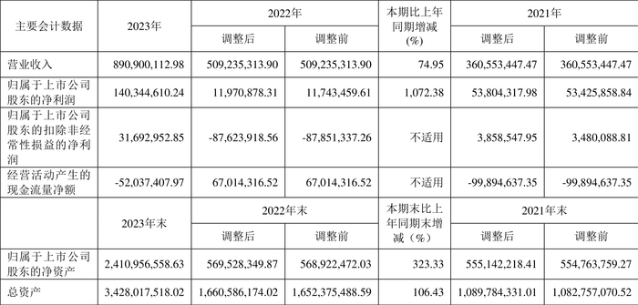 2023年,公司经营活动现金流净额为-5203.74万元,同比减少1.19亿元;筹资活动现金流净额15.97亿元,同比增加15.58亿元,主要系首次公开发行股票收到募集资金所致;投资活动现金流净额-13.95亿元,上年同期为-7642.11万元,主要系资金购买理财对外股权投资、及购买长期资产的资本性支出金额增加所致。