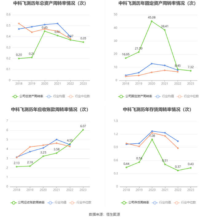 营运能力方面,2023年,公司公司总资产周转率为0.35次,上年同期为0.37次(2022年行业平均值为0.40次,公司位居同行业10/18);固定资产周转率为7.32次,上年同期为8.45次(2022年行业平均值为7.82次,公司位居同行业8/18);公司应收账款周转率、存货周转率分别为6.07次、0.43次。