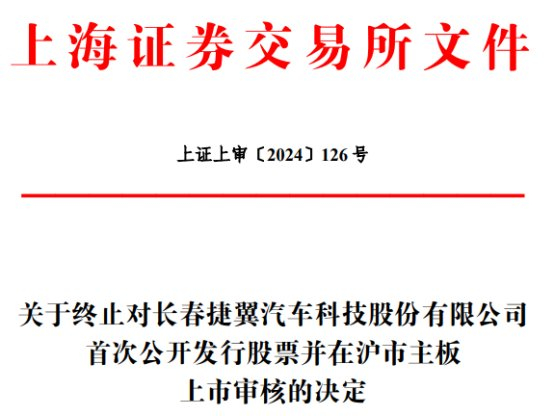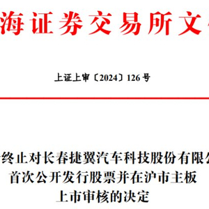中国经济网北京4月25日讯 上交所网站昨日发布关于终止对长春捷翼汽车科技股份有限公司(简称“捷翼科技”)首次公开发行股票并在沪市主板上市审核的决定。