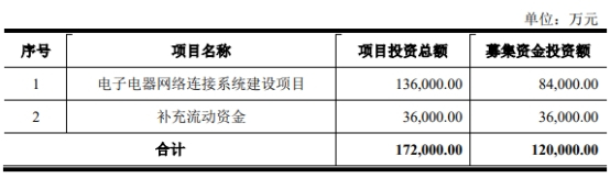 捷翼科技原拟在上交所主板公开发行数量不超过2,500万股,不低于本次发行后总股本的25%。公司原股东不公开发售股份。捷翼科技原拟募集资金120,000.00万元,分别用于电子电器网络连接系统建设项目、补充流动资金。