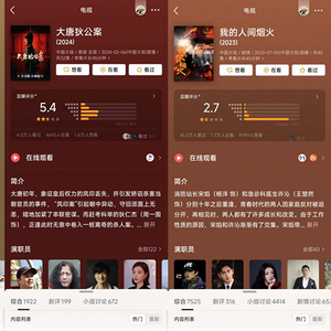 电视剧上,中国儒意2023年上线了《情满九道湾》、《大唐狄公案》、《我的人间烟火》三部剧集,对应豆瓣评分5.1分、5.4分、2.7分,可以说打破了以往业内对其高口碑的期待。