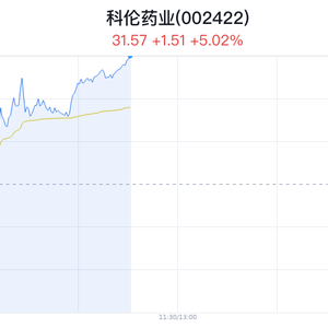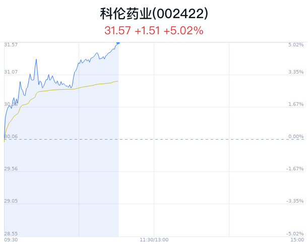 04月25日,科伦药业(002422)股价大幅上涨,截至11点01分,科伦药业上涨5.02%,报31.57元/股,创近11月新高,成交5.90亿元,换手率1.46%。