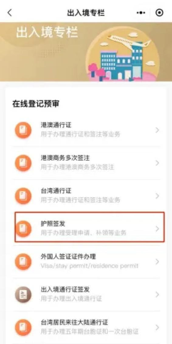 1.打开“随申办市民云”(APP、微信小程序、支付宝小程序),点击“出入境专栏”并进入,页面中包含:港澳通行证、护照签发等多项服务。