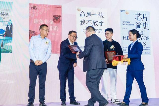 4月19日,在国家图书馆活动现场,汪波教授(左二)凭借其《芯片简史》一书获颁第十九届文津图书奖科普类图书。文津奖组委会如是评价:“作者不辞艰辛地梳理和呈现了芯片发明与发展的历程,详细地讲述了一群叛逆者突破传统、不断创新的故事。”供图:文津奖现场图片直播