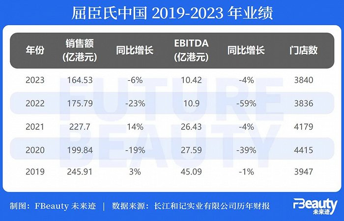 根据屈臣氏所属集团长江和记发布的最新财报,屈臣氏在中国市场中保健及美容产品的全年收益总额为164.53亿港币(约合人民币152.1亿),同比下滑6%;EBITDA(注:税息折旧摊销前利润)为10.42亿港币(约合人民币9.63亿),同比下滑4%。