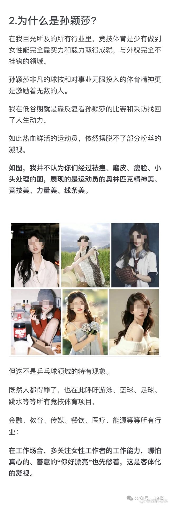 还有网友认为美的定义是宽泛的,为什么不能夸运动员美?何况孙颖莎哪里不美?