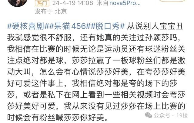 一部分网友认为呆猫为了段子歪曲了事实:从没见过比赛时粉丝喊莎莎好美,私下才夸。