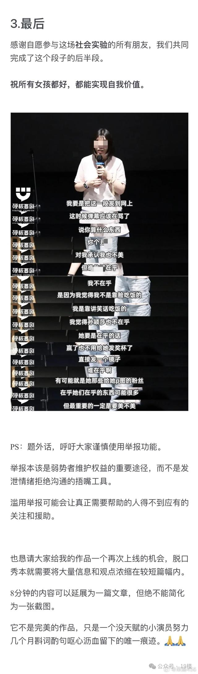 脱口秀演员表演中评价知名女运动员“一点都不美”引争议,本人发文道歉