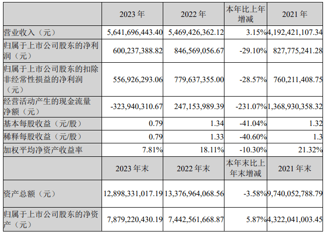 挖贝网4月25日,东富龙近日发布2023年年度报告,报告期内公司实现营业收入5,641,696,443.40元,同比增长3.15%;归属于上市公司股东的净利润600,237,388.82元,同比下滑29.10%。