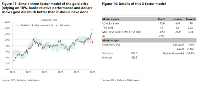 瑞银在报告中指出,全球股票策略模型表明,黄金价格通常由三个关键变量驱动: