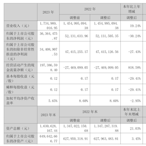 挖贝网4月25日,新晨科技 近日发布2023年年度报告,报告期内公司实现营业收入17.35亿元,同比增长19.24%;归属于上市公司股东的净利润3636.45万元,同比下滑30.24%。
