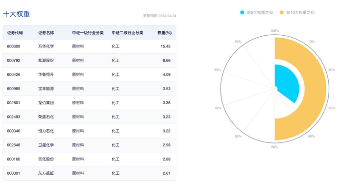 图片及数据来源:沪深交易所、华宝基金、雪球、Wind等,截至2024年4月25日。风险提示:化工ETF被动跟踪中证细分化工产业主题指数,该指数基日为2004.12.31,发布日期为2012.4.11,指数成份股构成根据该指数编制规则适时调整。文中指数成份股仅作展示,个股描述不作为任何形式的投资建议,也不代表管理人旗下任何基金的持仓信息和交易动向。基金管理人评估的本基金风险等级为R3-中风险,适合适当性评级C3(平衡型)及以上投资者。任何在本文出现的信息(包括但不限于个股、评论、预测、图表、指标、理论、任何形式的表述等)均只作为参考,投资人须对任何自主决定的投资行为负责。另,本文中的任何观点、分析及预测不构成对阅读者任何形式的投资建议,亦不对因使用本文内容所引发的直接或间接损失负任何责任。基金投资有风险,基金的过往业绩并不代表其未来表现,基金管理人管理的其他基金的业绩并不构成基金业绩表现的保证,基金投资需谨慎。