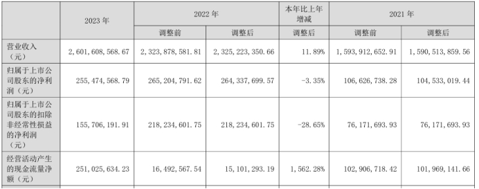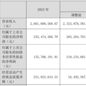 挖贝网4月25日,江丰电子 近日发布2023年年度报告,报告期内公司实现营业收入2,601,608,568.67元,同比增长11.89%;归属于上市公司股东的净利润255,474,568.79元,同比下滑3.35%。