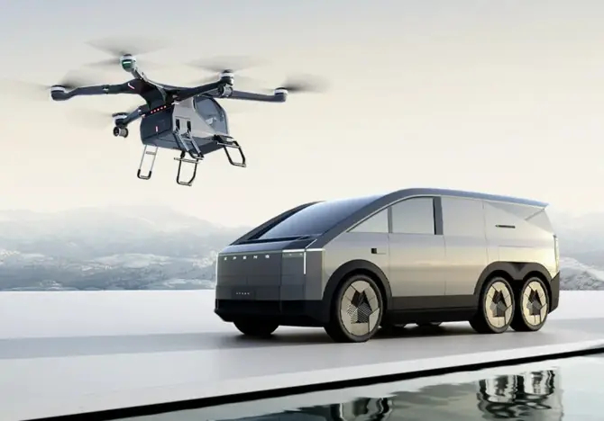 其中,“陆行体”是一个可以乘坐4-5人的智能座舱,搭载增程式混合动力系统,整车采用了三轴六轮的设计,可以实现6X6全轮驱动以及后轮转向;“飞行体”采用270°全景双人座舱和分布式电推进系统,具备手动、自动两种驾驶模式和纯电动垂直起降功能,能完全收纳至“陆行体”车内。据介绍,这个飞行汽车驾驶起来并不复杂,只要会开车就能轻松驾驶。