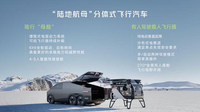 小鹏此前给出了具体的预售时点——今年11月珠海航展,售价预计超过100万元,计划在2025年底大规模交付。如果进展顺利,小鹏陆地航母会成为全球第一款面向个人用户量产交付的分体式飞行汽车。