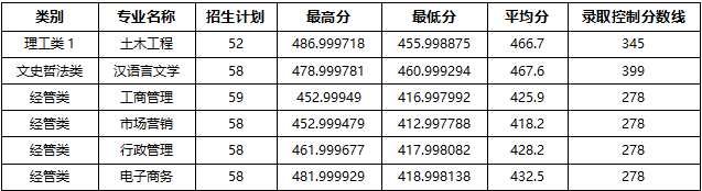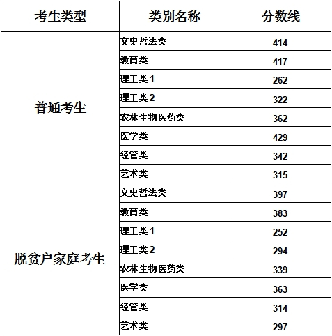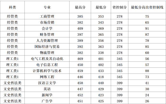 各类别最低录取控制分数线也同时公布