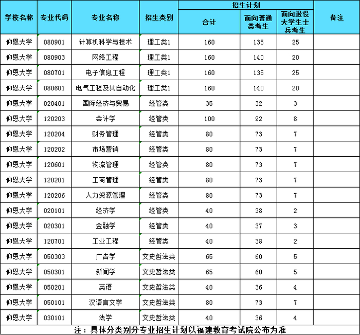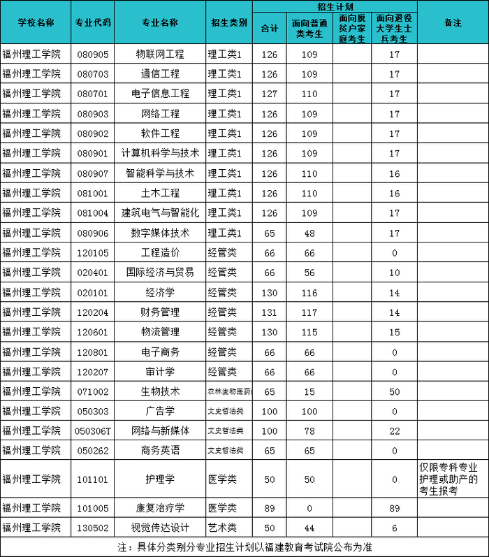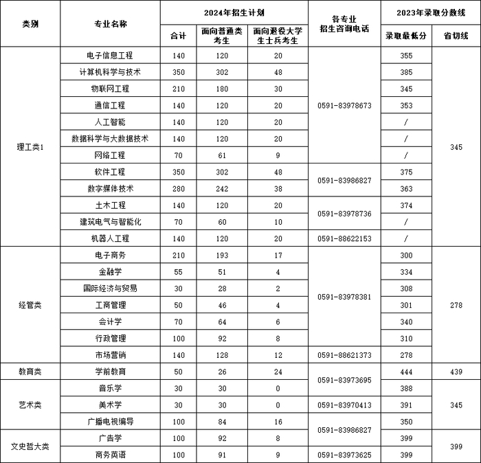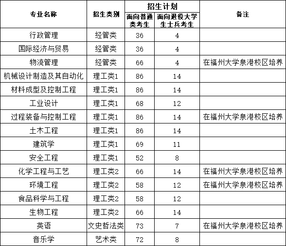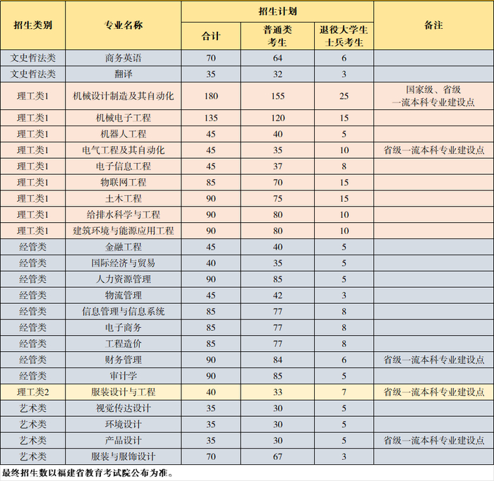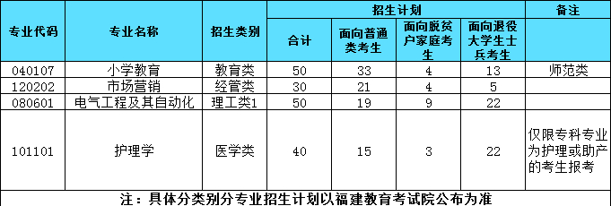 具体分类分专业招生计划请查阅福建省教育考试院公布的高校招生计划。