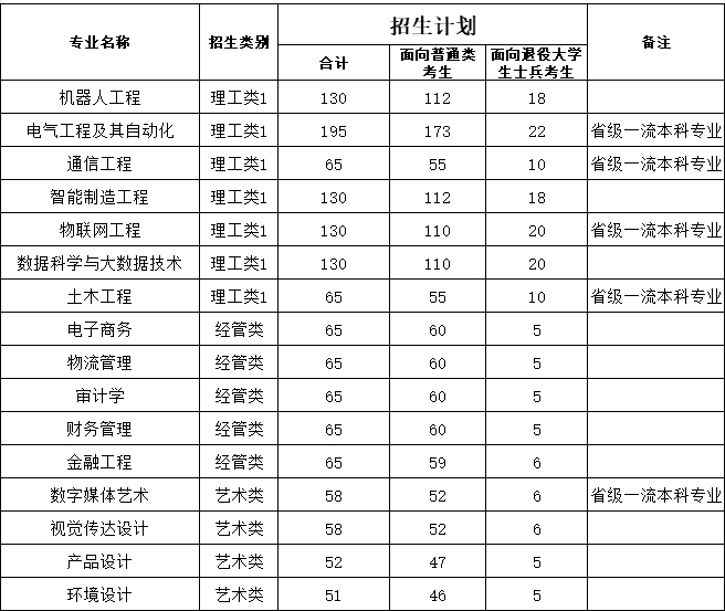 学校现有10个学院,3个直属系部,25个本科专业,涵盖经济学、管理学、文学、法学、工学、教育学六大学科门类。学校对接地方经济社会发展及产业转型升级需求,加强学科专业建设,凝练学科方向,3个学科获立省级应用型学科建设项目,5个专业入选省级一流本科专业,获批2个省级应用型人才培养专业群、2个省级服务产业特色专业、5个省级创新创业教育改革试点专业。