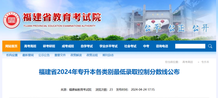 福建省2024年专升本考试成绩公布