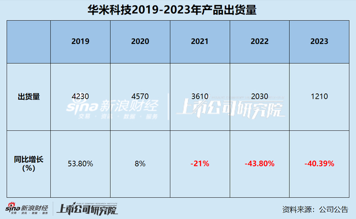 收入大幅下滑的背后,是近年来华米科技产品出货量的明显减少。