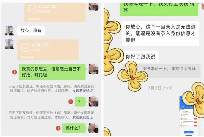有网友称遇到骗子生成假的咸鱼链接、故意把演唱会时间提前让系统自动收货或者诱导消费者点击确认收货等诈骗情形,甚至还有网友称遇到骗子以支付不成为由,要求重复支付最终被骗几千上万元。