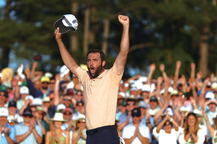 劳力士代言人斯科蒂·舍夫勒庆祝夺冠 ©Rolex/Augusta National 2024