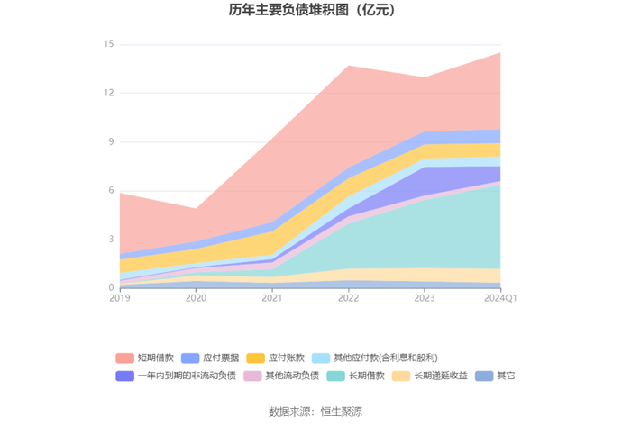 负债重大变化方面,截至2024年一季度末,公司短期借款较上年末增加41.92%,占公司总资产比重上升3.78个百分点;长期借款较上年末增加23.08%,占公司总资产比重上升2.41个百分点;一年内到期的非流动负债较上年末减少48.21%,占公司总资产比重下降2.77个百分点;其他应付款(含利息和股利)较上年末增加14.54%,占公司总资产比重上升0.17个百分点。