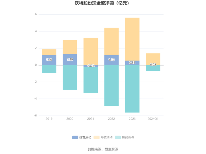 中证智能财讯 沃特股份(002886)4月26日披露2024年一季报。2024年第一季度,公司实现营业总收入3.64亿元,同比增长5.91%;归母净利润544.47万元,同比增长5.96%;扣非净利润362.88万元,同比下降23.51%;经营活动产生的现金流量净额为240.55万元,同比下降42.61%;报告期内,沃特股份基本每股收益为0.021元,加权平均净资产收益率为0.31%。