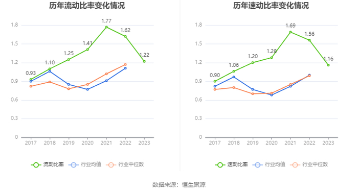 2023年,公司流动比率为1.22,速动比率为1.16。
