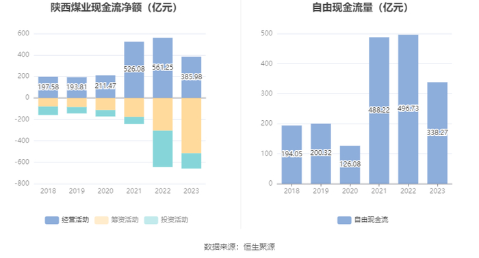 2023年,公司经营活动现金流净额为385.98亿元,同比下降31.23%;筹资活动现金流净额-515.33亿元,同比减少210.29亿元;投资活动现金流净额-143.25亿元,上年同期为-340.17亿元。