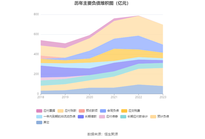 负债重大变化方面,截至2023年年末,公司合同负债较上年末减少41.08%,占公司总资产比重下降2.01个百分点;预计负债较上年末增加14.85%,占公司总资产比重上升2.28个百分点;应交税费较上年末减少27.25%,占公司总资产比重下降0.56个百分点;长期借款较上年末减少30.41%,占公司总资产比重下降0.37个百分点。