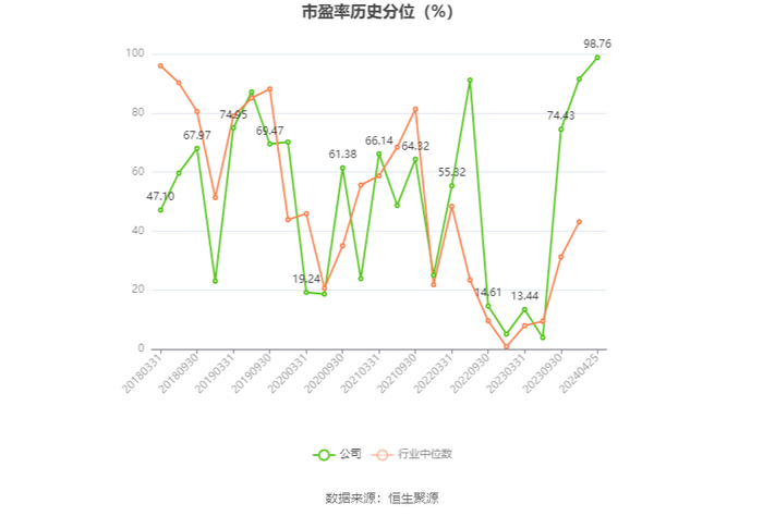 市盈率为负时,不显示当期分位数,会导致折线图中断。