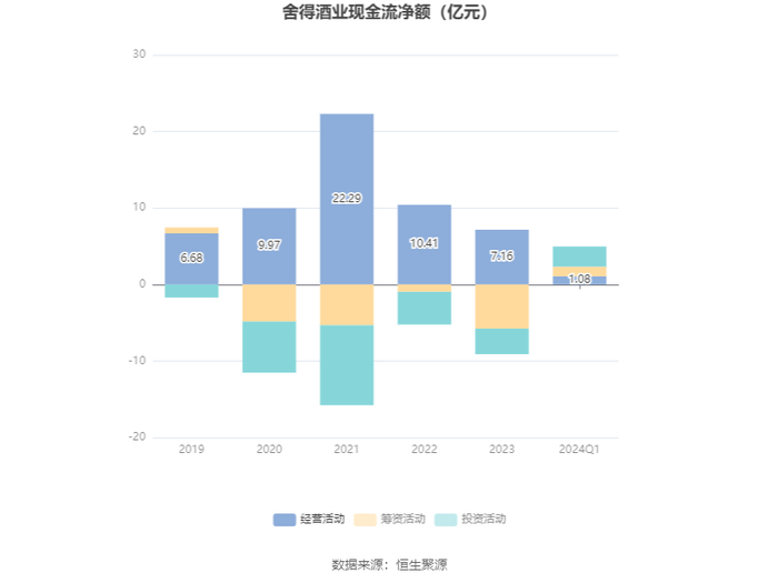2024年第一季度,公司经营活动现金流净额为1.08亿元,同比下降52.24%;筹资活动现金流净额1.25亿元,同比增加7535.29万元;投资活动现金流净额2.64亿元,上年同期为-1.4亿元。