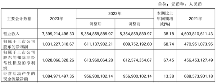 挖贝网4月25日,金诚信 近日发布2023年年度报告,报告期内公司实现营业收入7,399,214,496.30元,同比增长38.18%;归属于上市公司股东的净利润1,031,227,318.67元,同比增长68.74%。