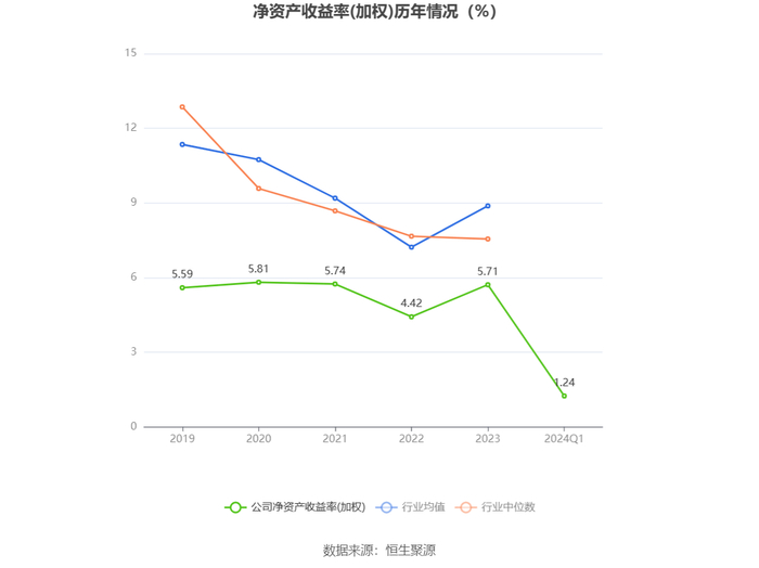 数据显示,2024年第一季度公司加权平均净资产收益率为1.24%,较上年同期增长0.07个百分点;公司2024年第一季度投入资本回报率为1.19%,较上年同期增长0.03个百分点。