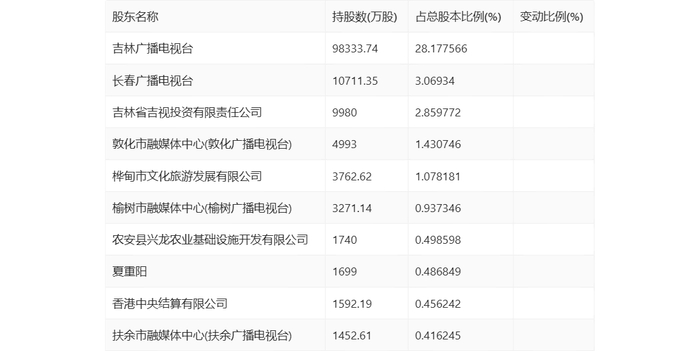 一季报显示,2024年一季度末公司十大流通股东中,新进股东为夏重阳、扶余市融媒体中心(扶余广播电视台),取代了上年末的朱永存、朱广超。在具体持股比例上,香港中央结算有限公司持股有所下降。